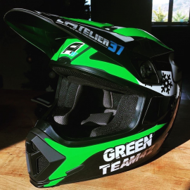 Kit déco 100% personnalisé pour casque MX ! Plusieurs marques et modèles disponibles. Le kit déco recouvre environ 90% du casque.